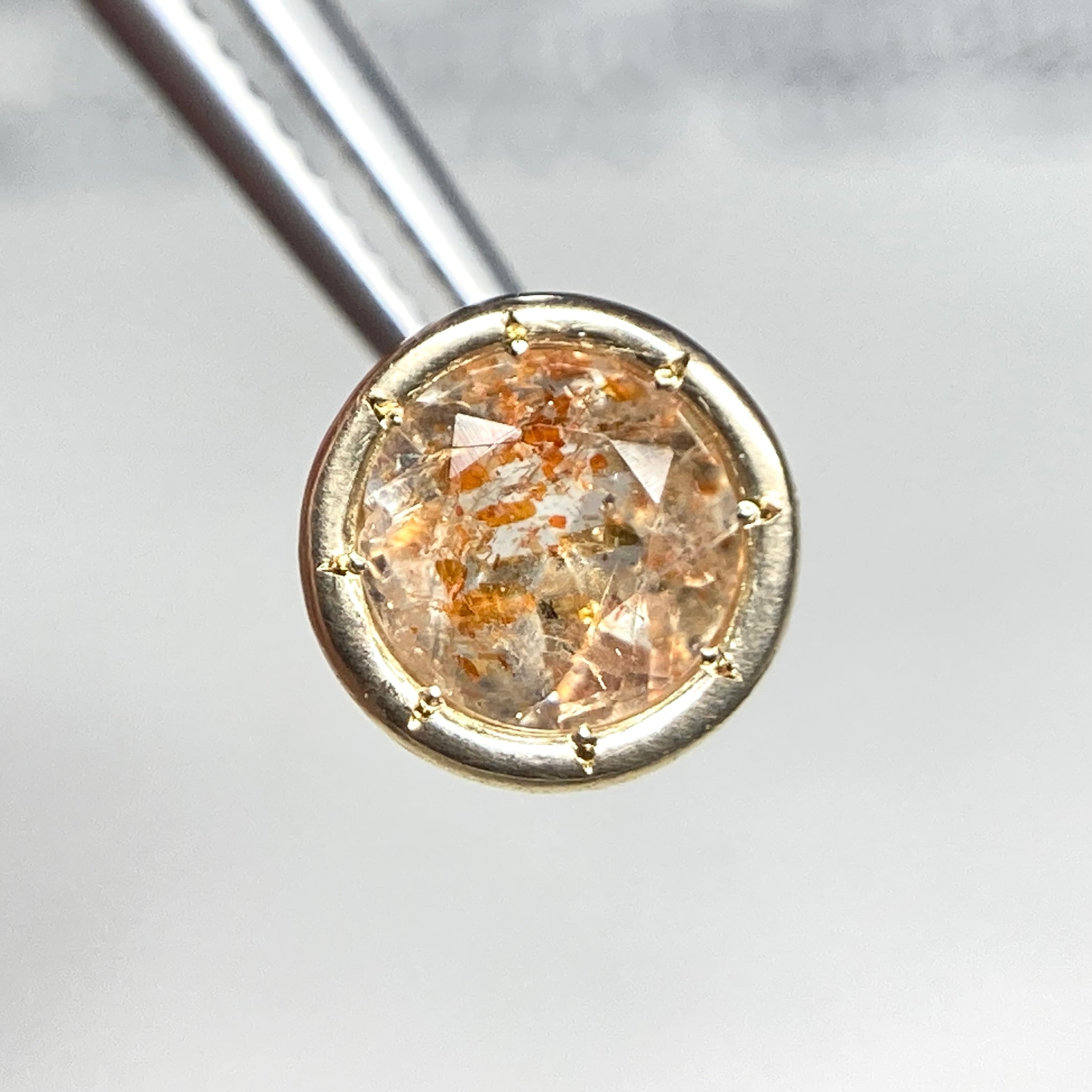 クリアカラーのベースにオレンジをメインとしたラメが舞い散る、魅惑的な表情を楽しませてくれるサンストーンです。