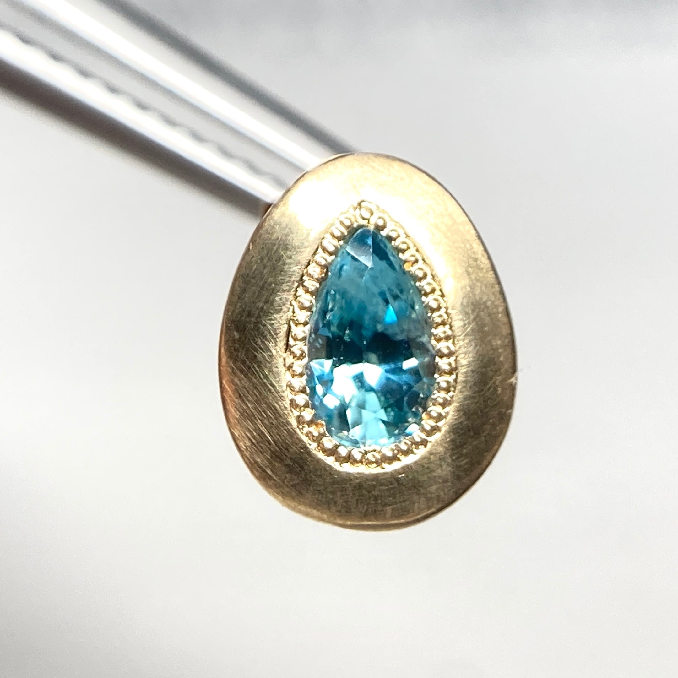 ジルコンの周囲を幅広い石枠で囲いボリュームを出し、ミルグレインセッティングでワンポイントとクラシカルな雰囲気をプラスして仕上げました。