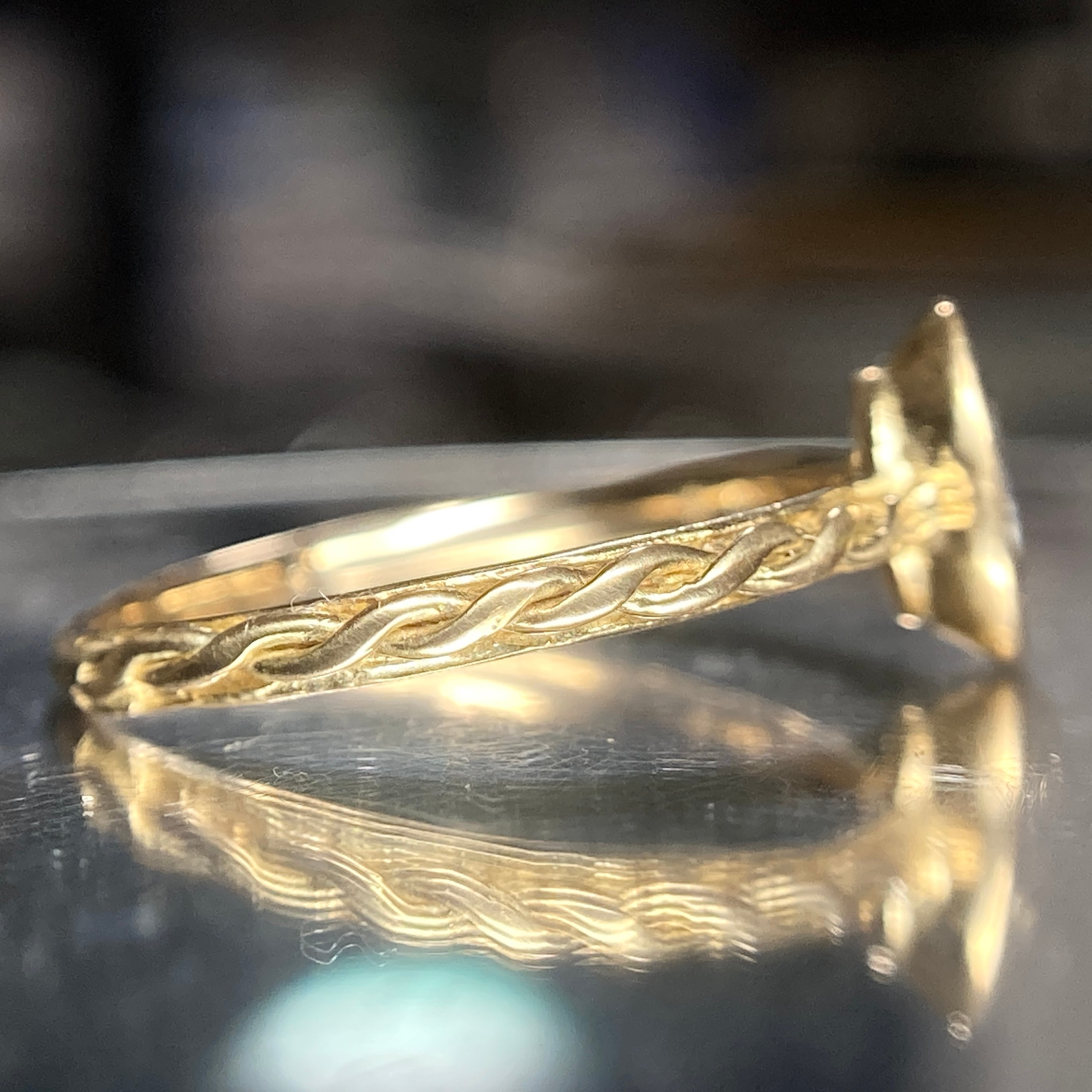 ベゼルをシンプルにしつつ、縄目アームで存在感・アンティークな雰囲気をプラス。