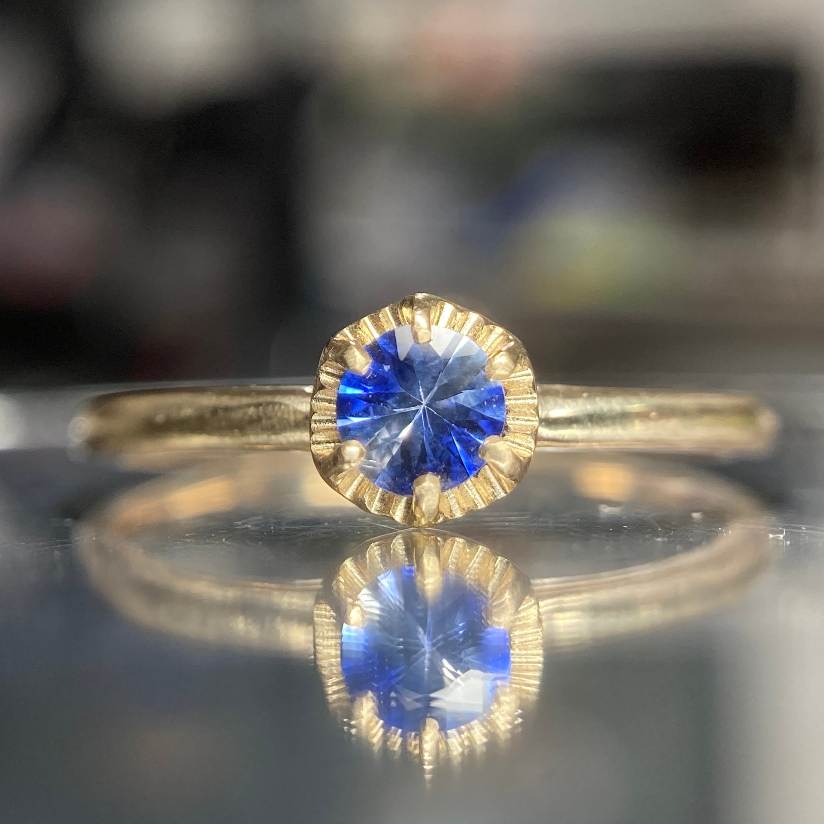 ブルー×クリアがそれぞれ対角線状に配置された、魅惑的な色合いのサファイア。この子ならバイカラーといってもいいかな?