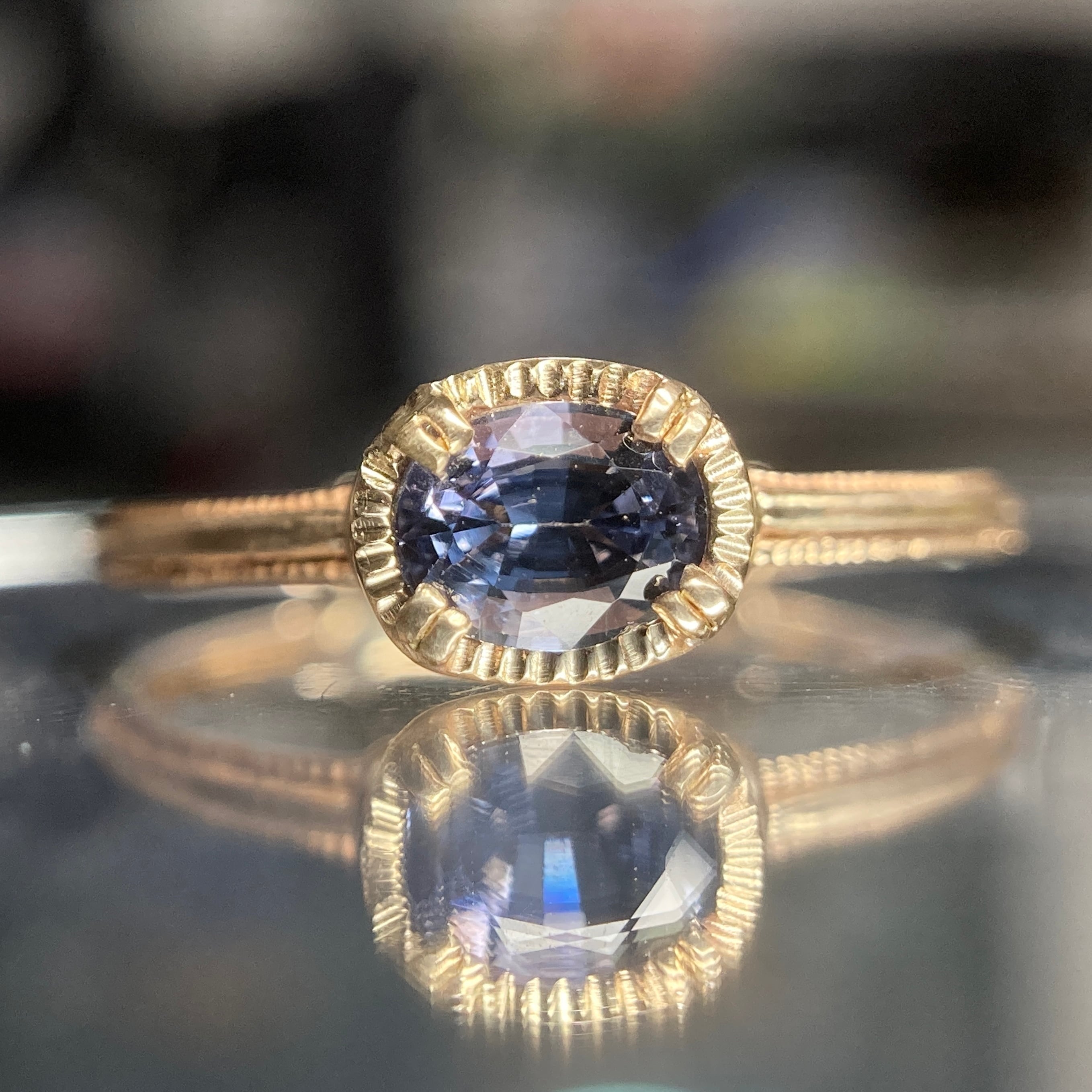 クールでカッコ良い、さらに上品な雰囲気もあるスピネルを、ヴィンテージディテールを散りばめたアームにセッティング。