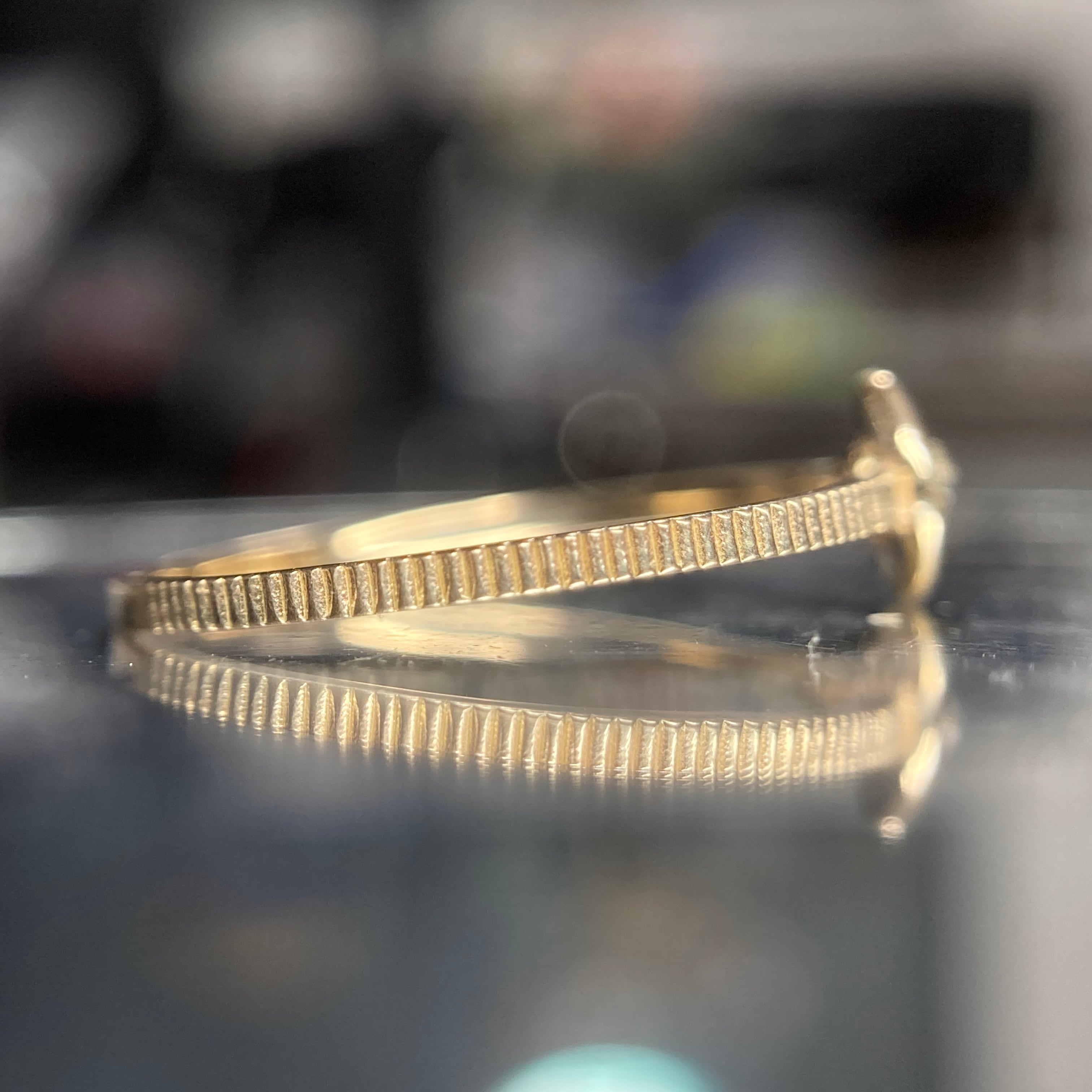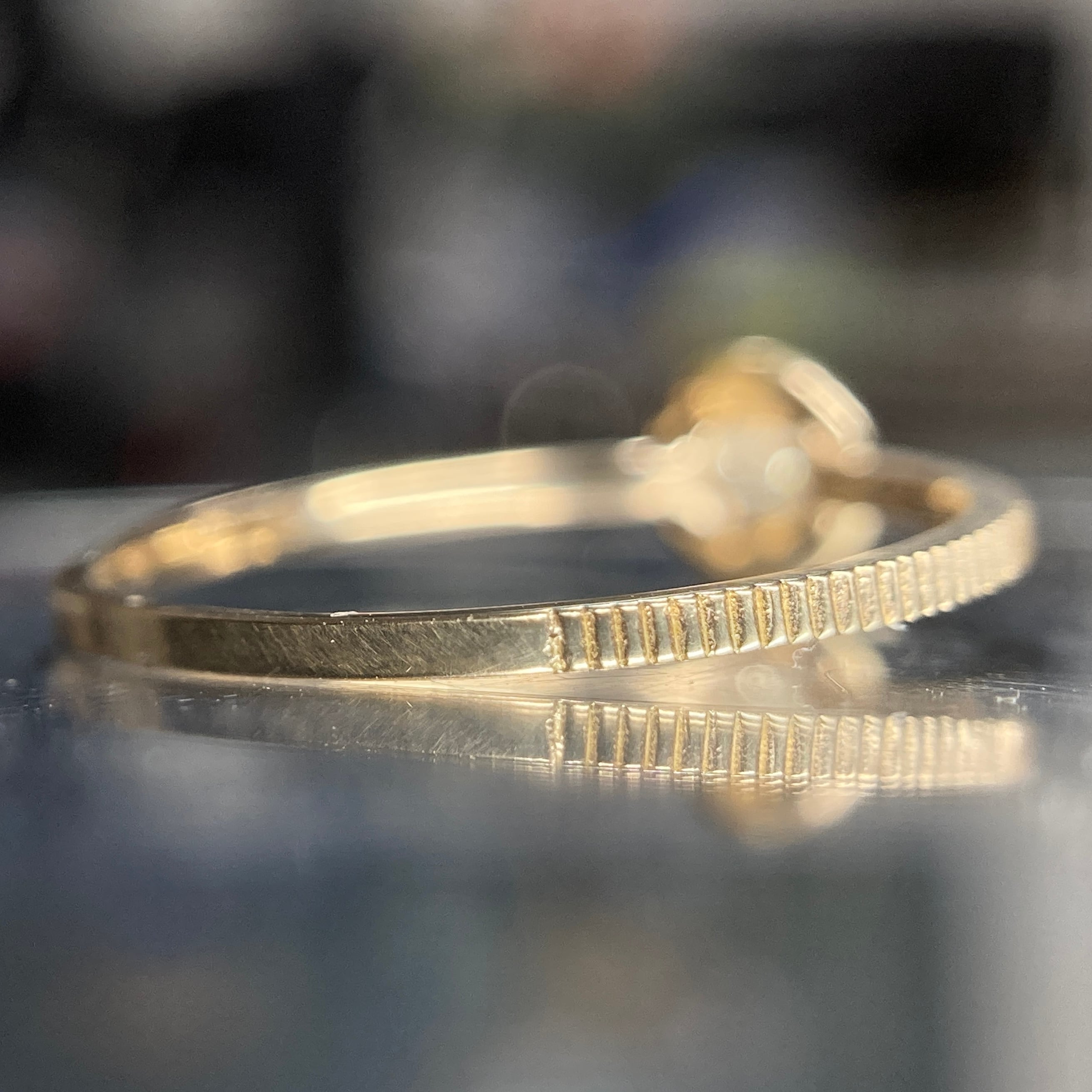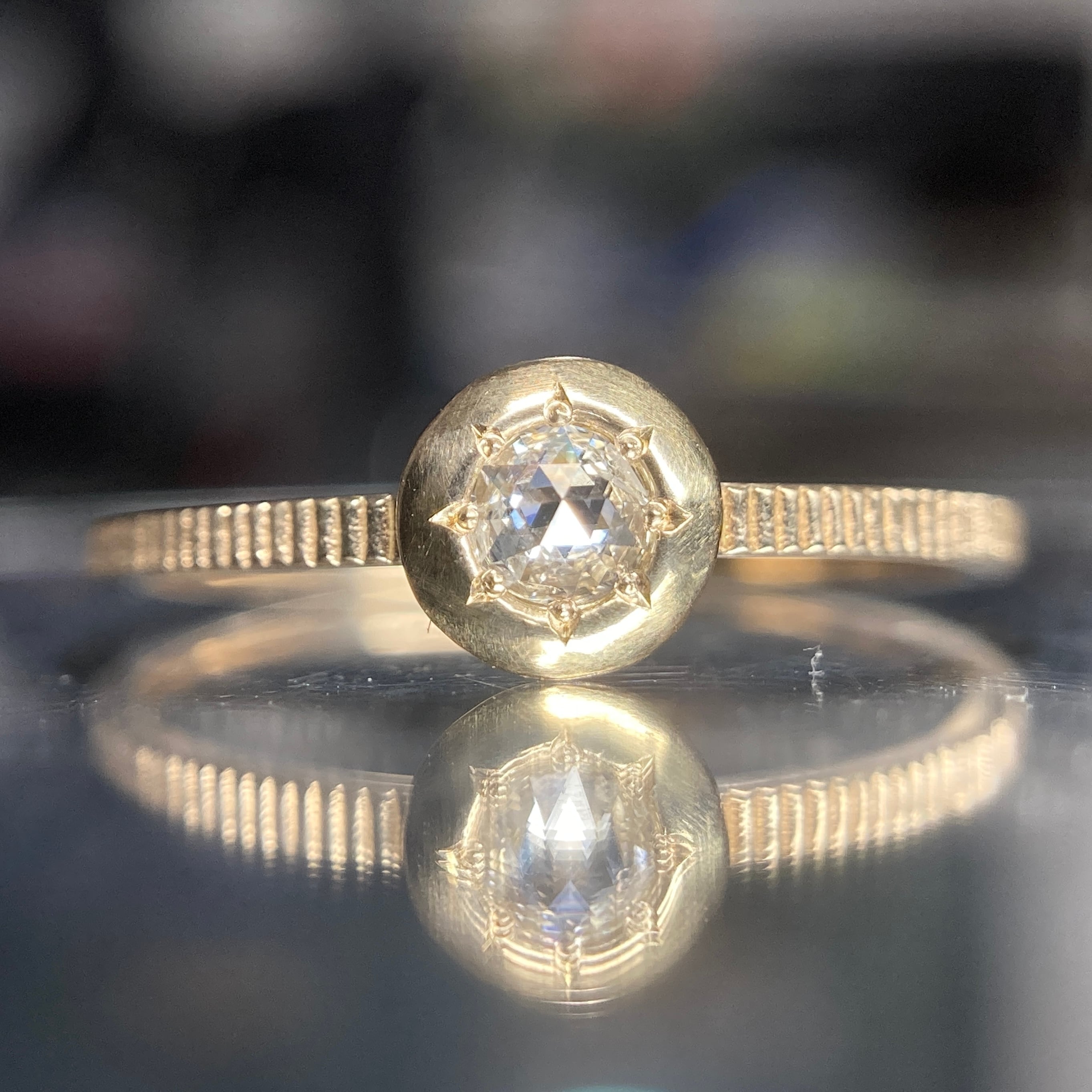 細身ながらもしっかりと存在感あるアームに、幅広ベゼルでローズカットダイヤモンドをセッティング。