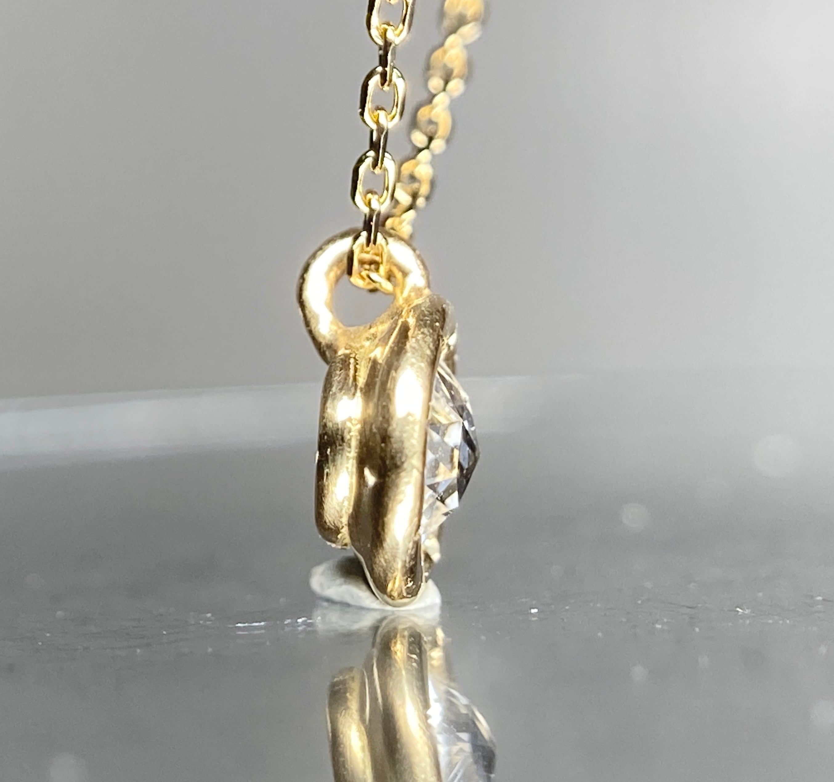 無色に近いカラー、アイクリーンのクラリティにツヤツヤの良テリ。そして最大のこだわりは厚みのあるローズカットなのです。
