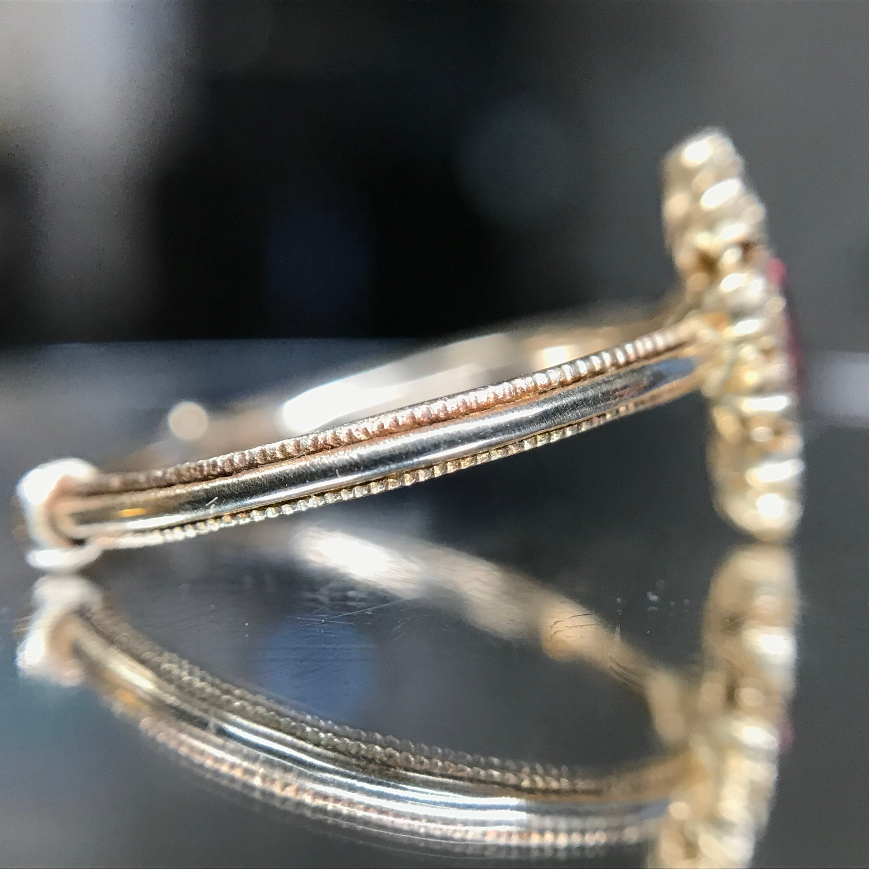 スピネルの周囲にはダイヤモンドをミルグレインセッティング。
