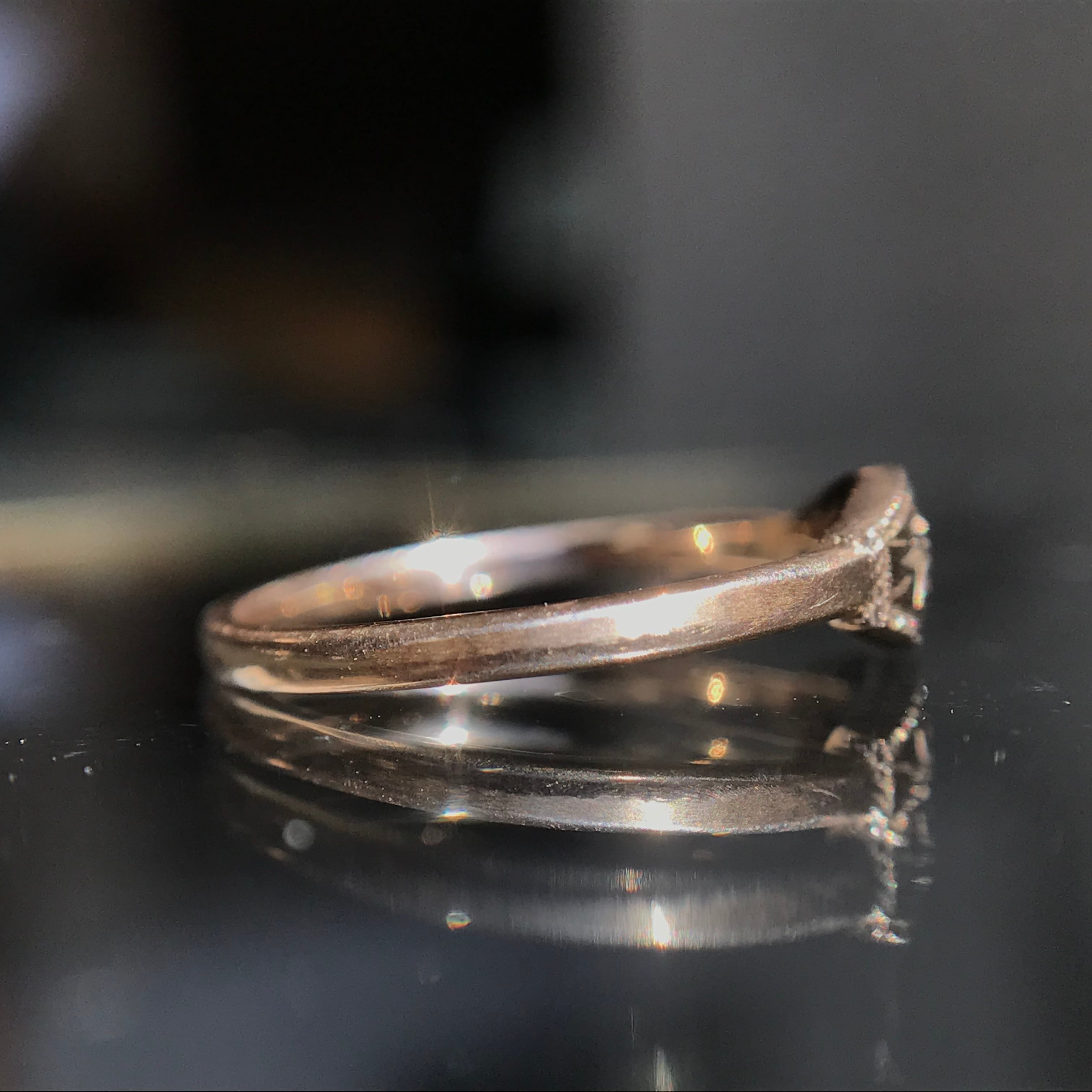 クラシカルな模様をいれた横長6角形プレートに堀留し、重厚感もあるリングに仕上げました。