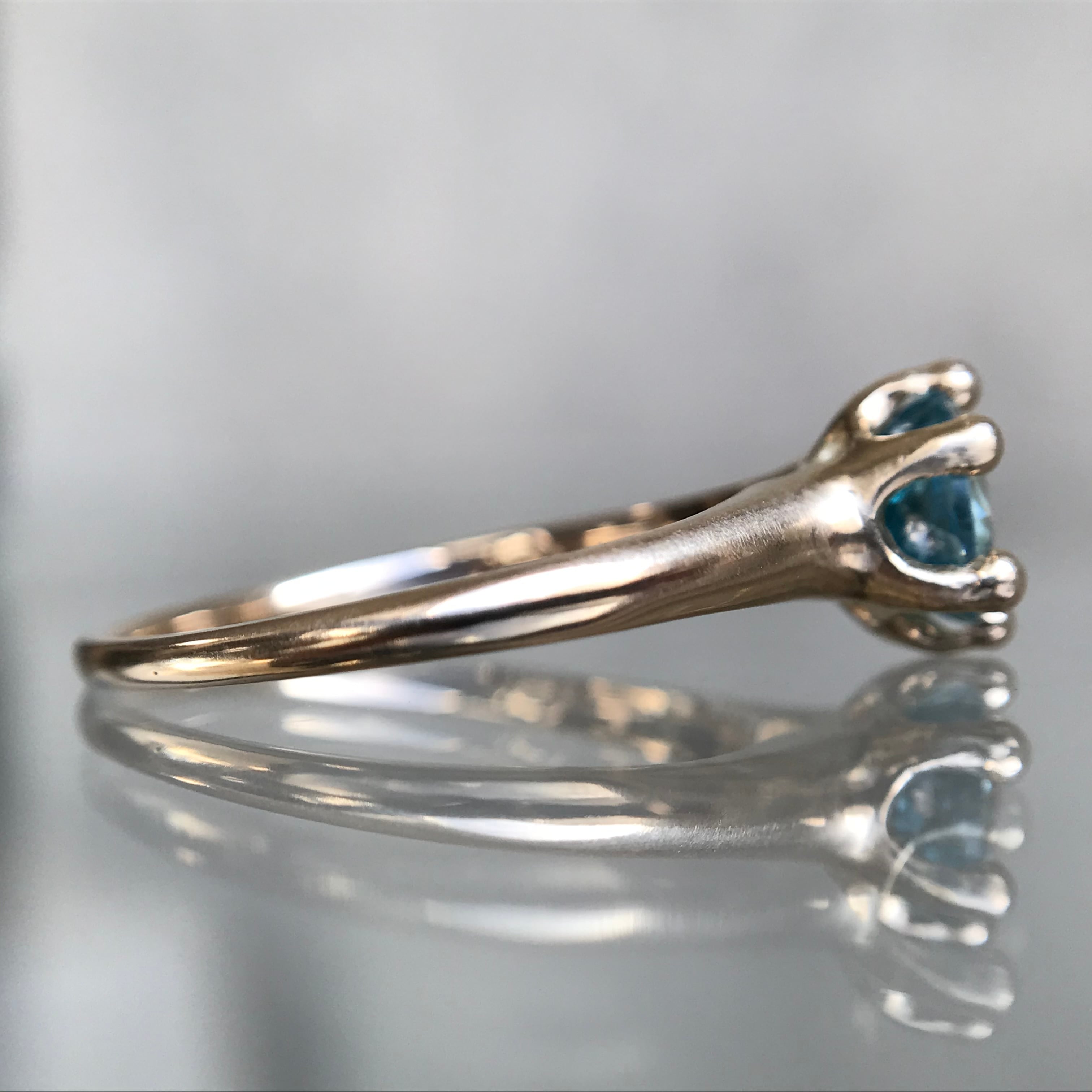 そのジルコンをセットしたベゼルはノスタルジックな立て爪スタイルをベースに、爪の先をまん丸に造形。