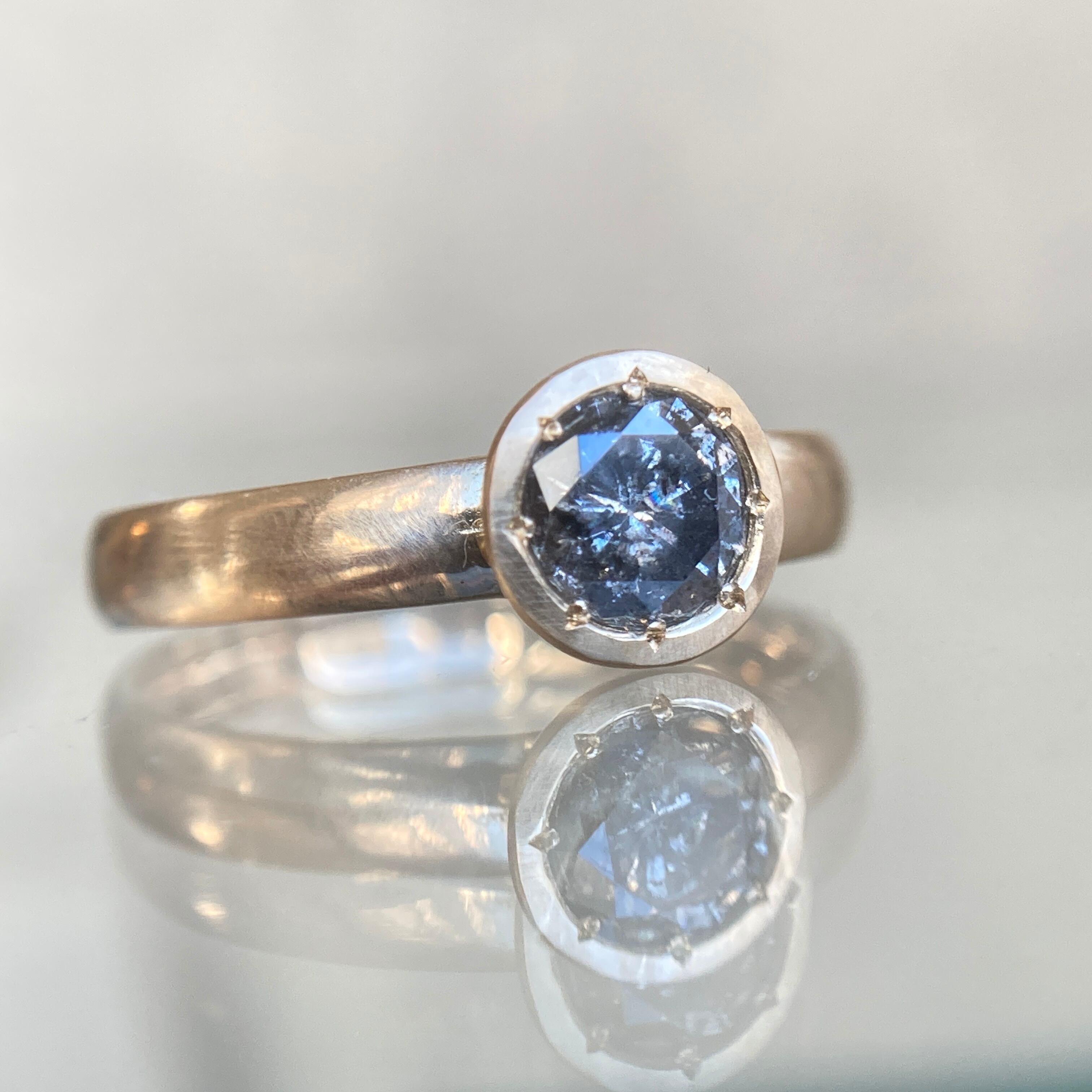 ブラックカーボンが絶妙に入り、クールな色合いを見せてくれるダイヤモンド。