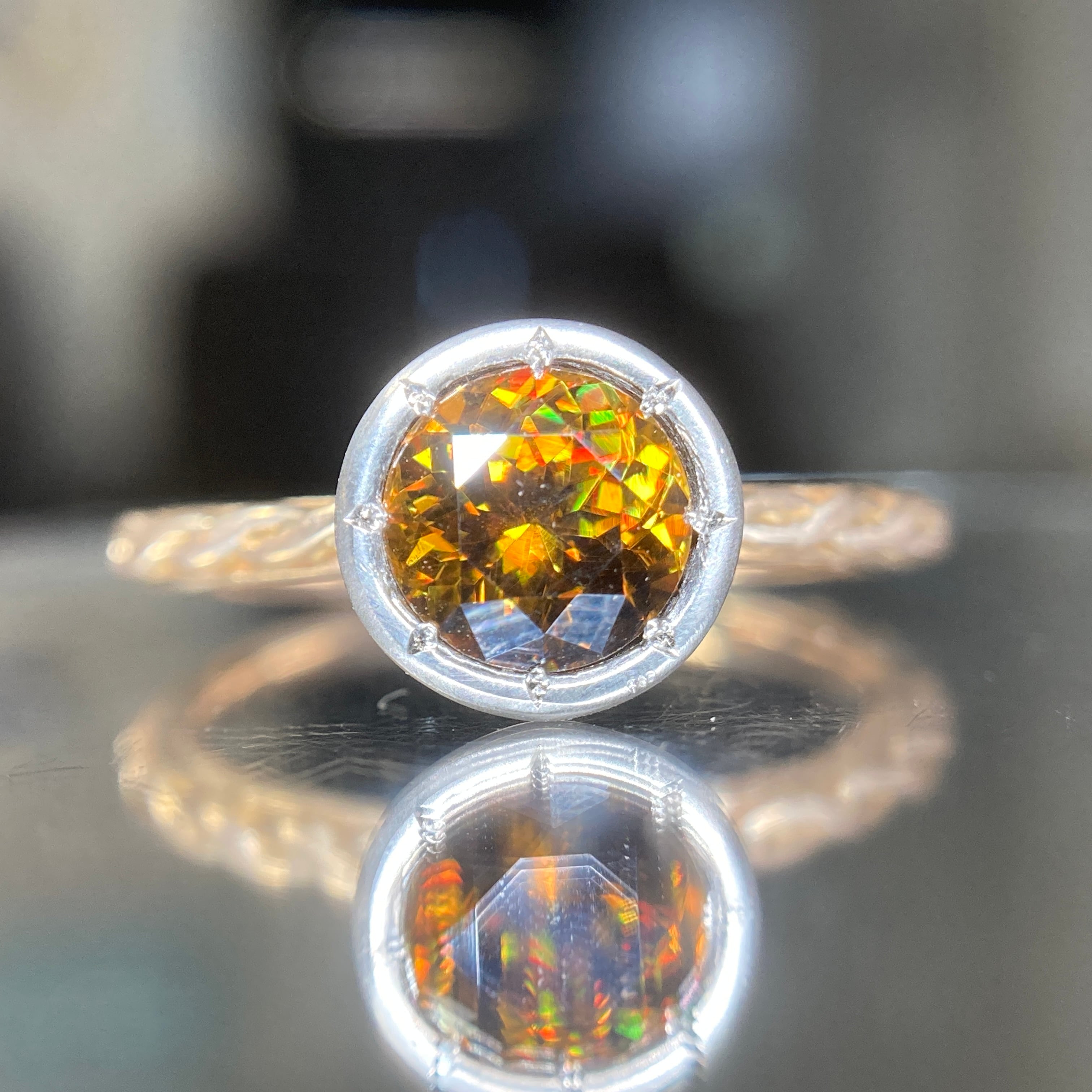 ブラウン寄りベースカラーを力強い輝きが彩るスフェーン。