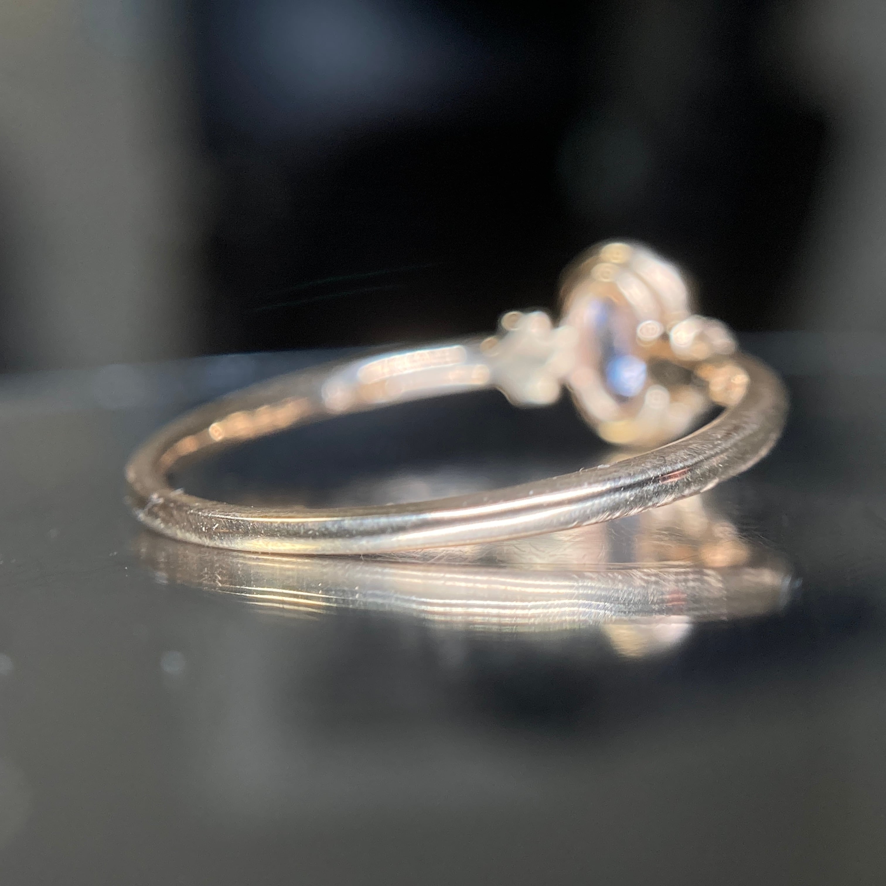 クリア部分が入ることでサファイアの輝きがググッと増します。もちろん、細やかなカッティングがあってこそ。