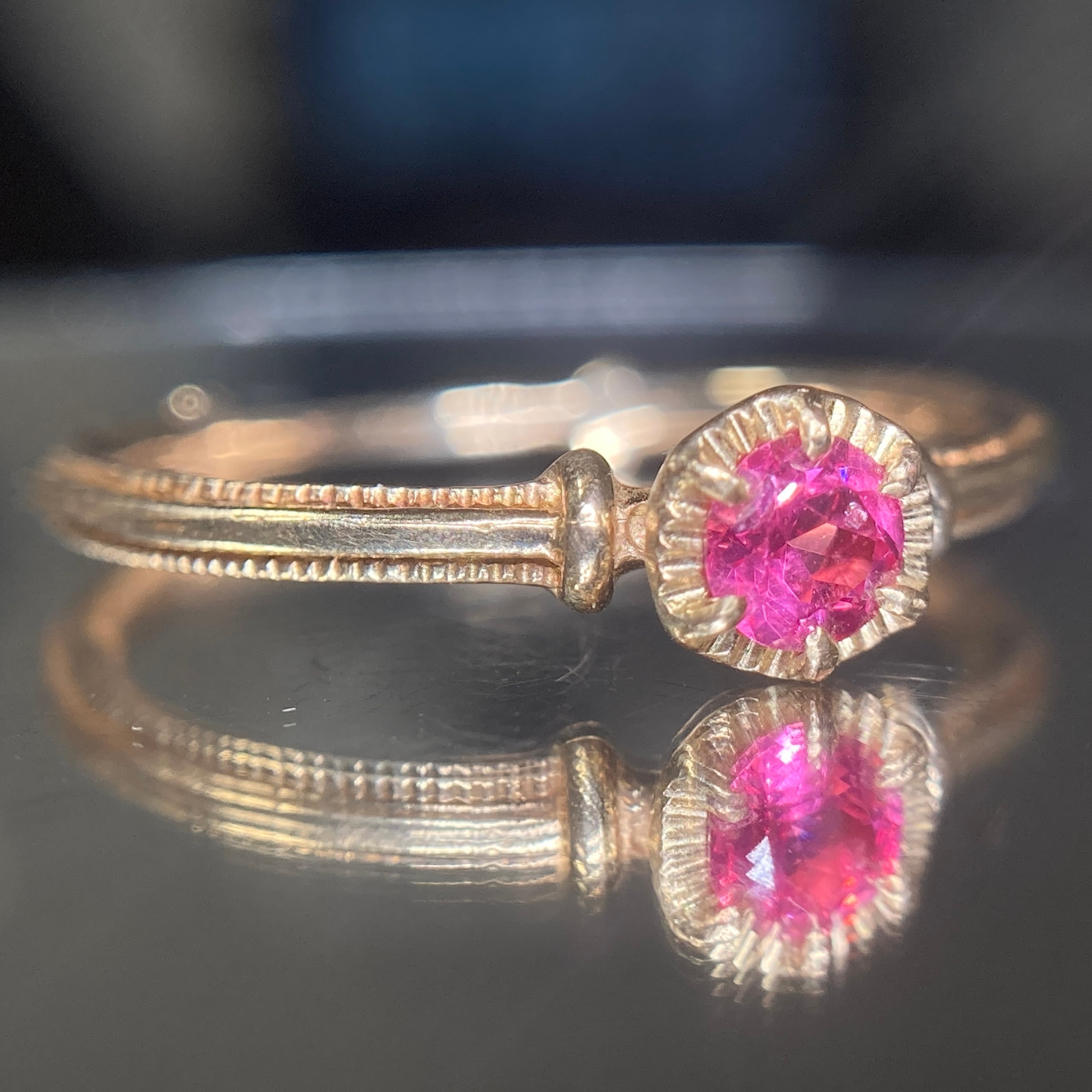 華やかで甘さもある美しいピンク発色が楽しめるスピネルです。テリはもちろん、抜け感のないカットが引き出す輝きも素敵。セカンドラインといえど、宝石選別のハードルは下げてませんよー